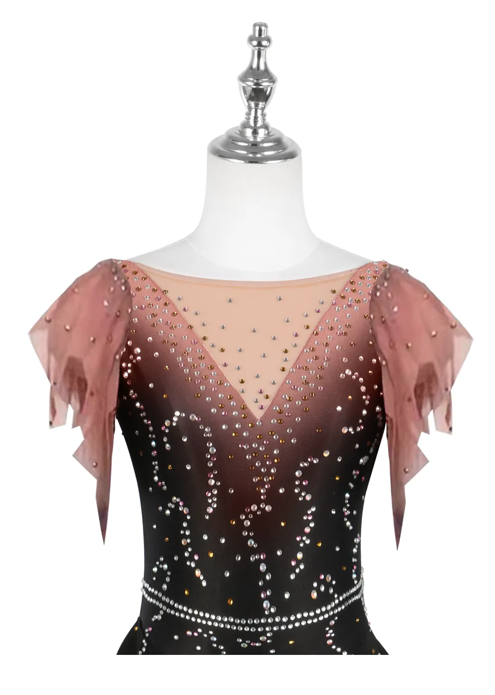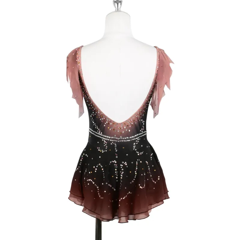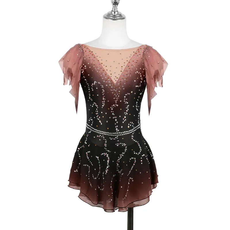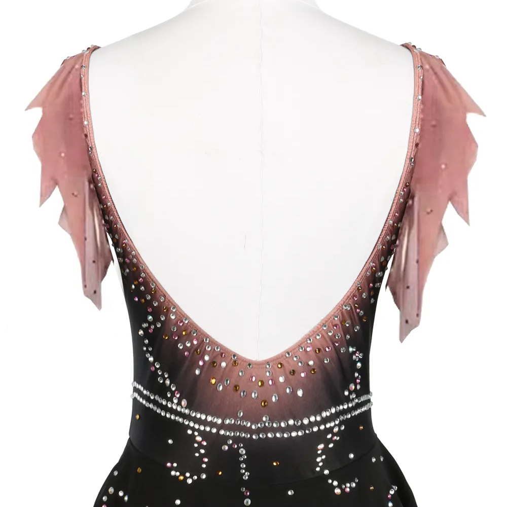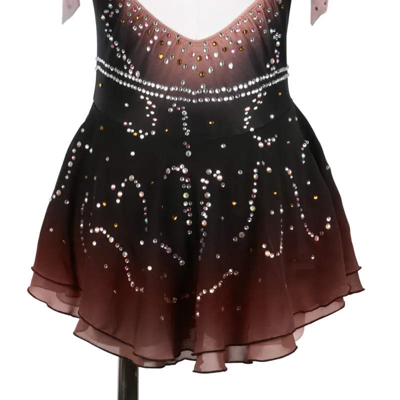 Figure Skating Dress Women Ice Skirt Sleeveless Gradient Short Sleeve Backless Diamonds Mesh