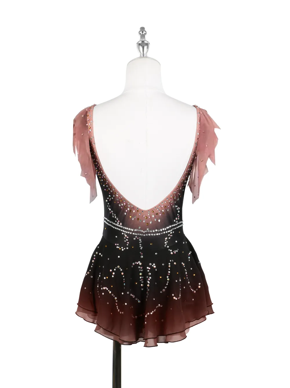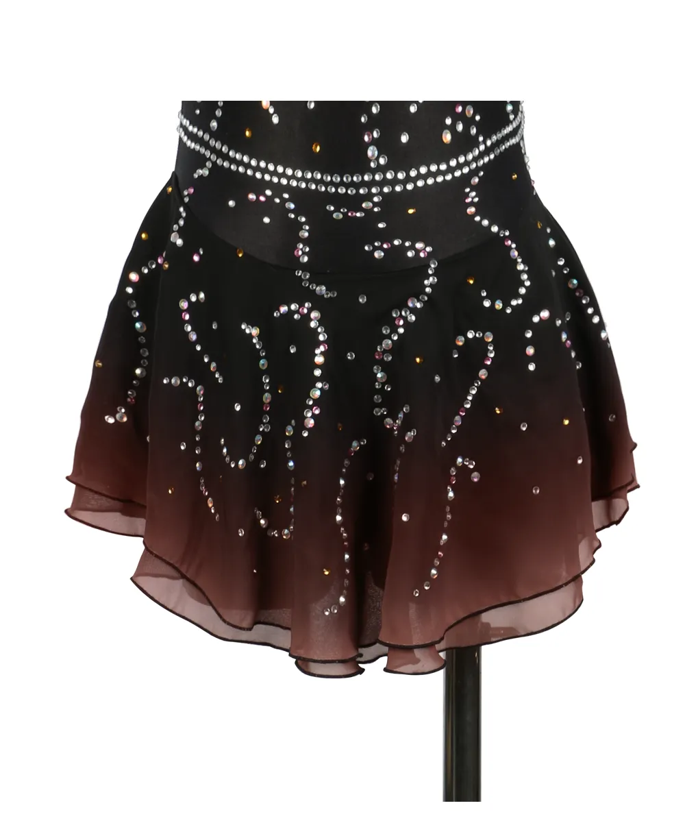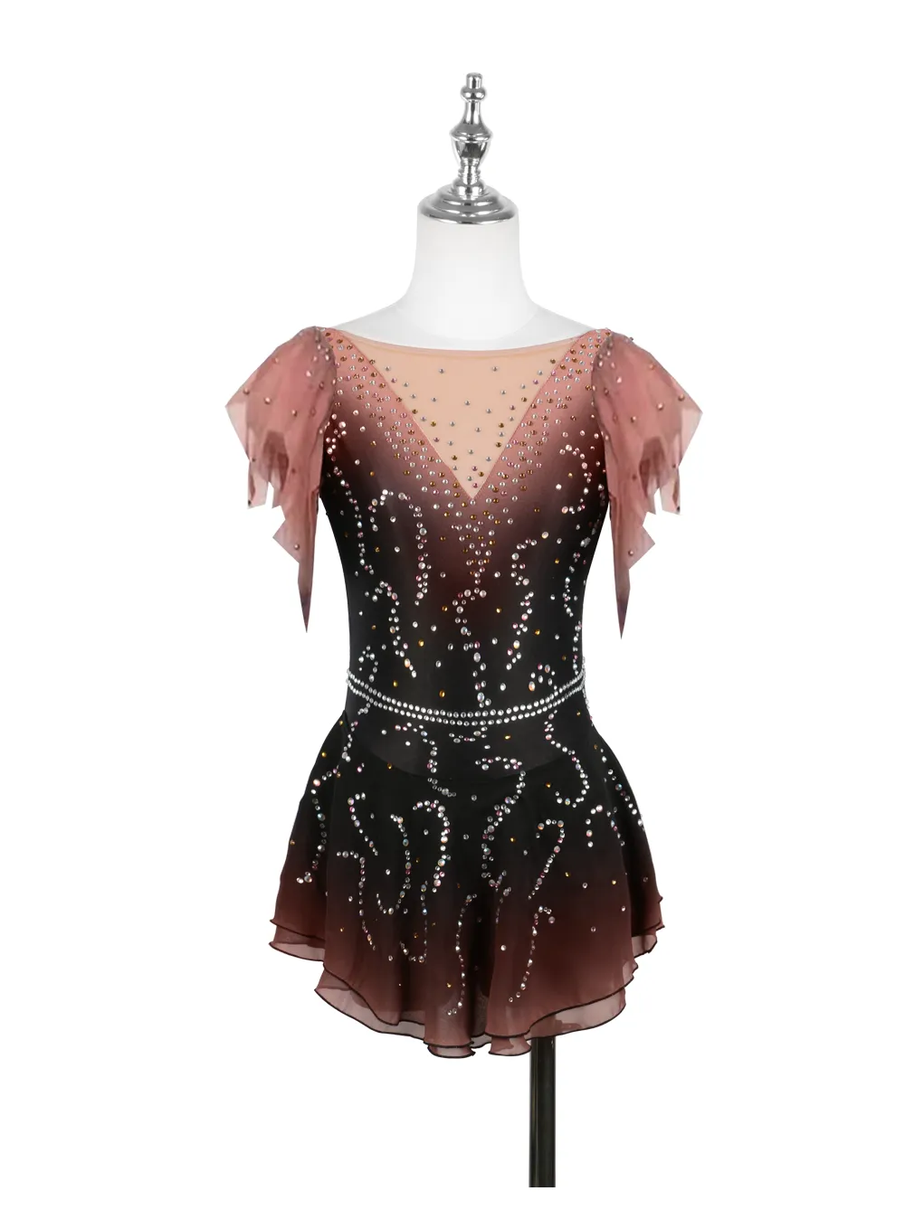 Figure Skating Dress Women Ice Skirt Sleeveless Gradient Short Sleeve Backless Diamonds Mesh